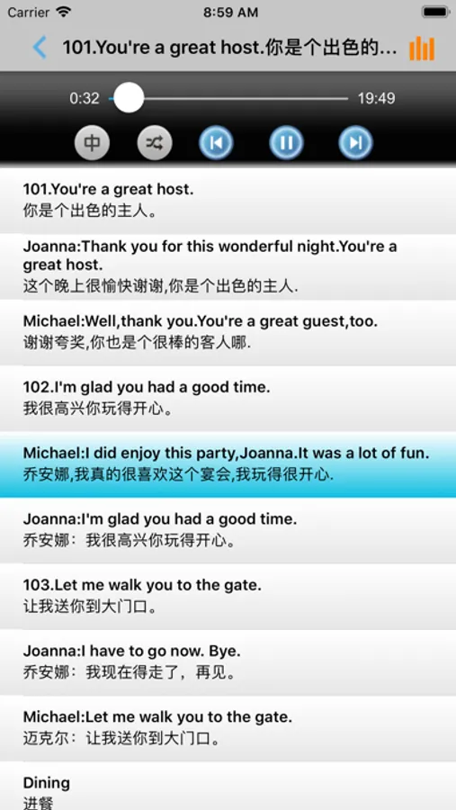 生活篇则深入话题,从学校与教育,工作和职业、购物、找房子到电影、报纸和杂志、观光、露营、宗教信仰、难忘的经历、回忆、网恋等。