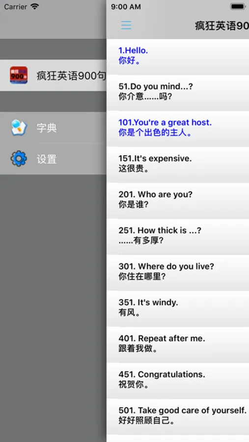 《疯狂英语900句》集中了英语日常口语中900个标准句型,共可提供3600个日常用句。