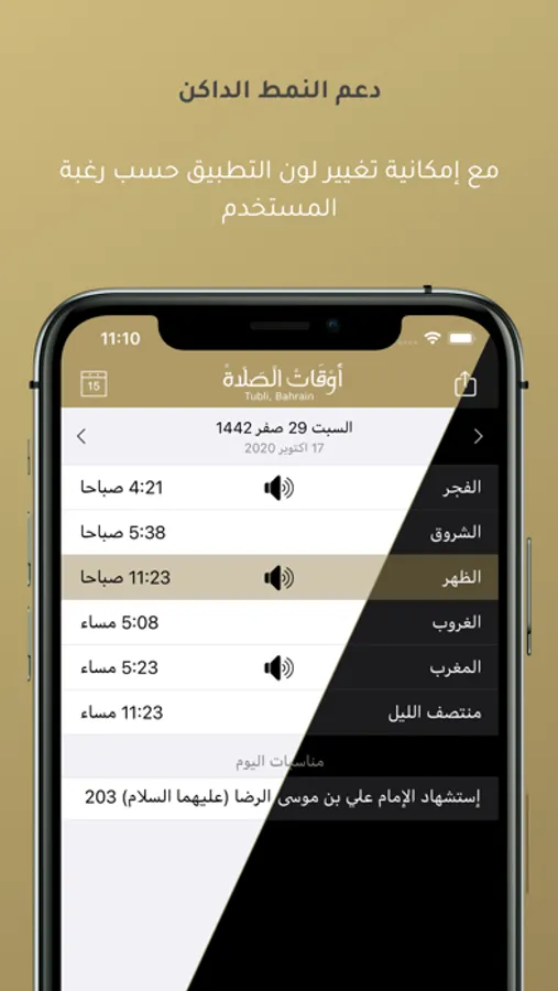 - وقت منتصف الليل مع امكانية التحكم في طريقة الحساب.