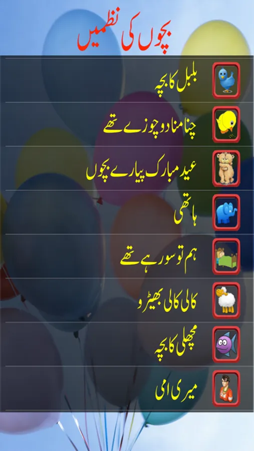 A great fun and an educational tool especially for preschool and kindergarten toddlers. Whether you're a parent of a young child, teacher or an older brother or sister here you will find delightful, charming, uncomplicated, safe, absolutely perfect rhymes for your little ones. All the familiar and best loved nursery rhymes presented in urdu format that can be easily readable and understood for early stage babies. Educational Pakistani poetry for nursery kids in urdu.