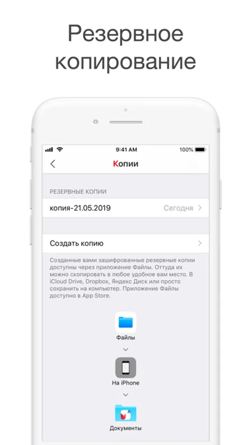 All Documents works on iPhone and iPad and stores your documents in Keychain - secure, protected system storage where only your approved devices can access them.