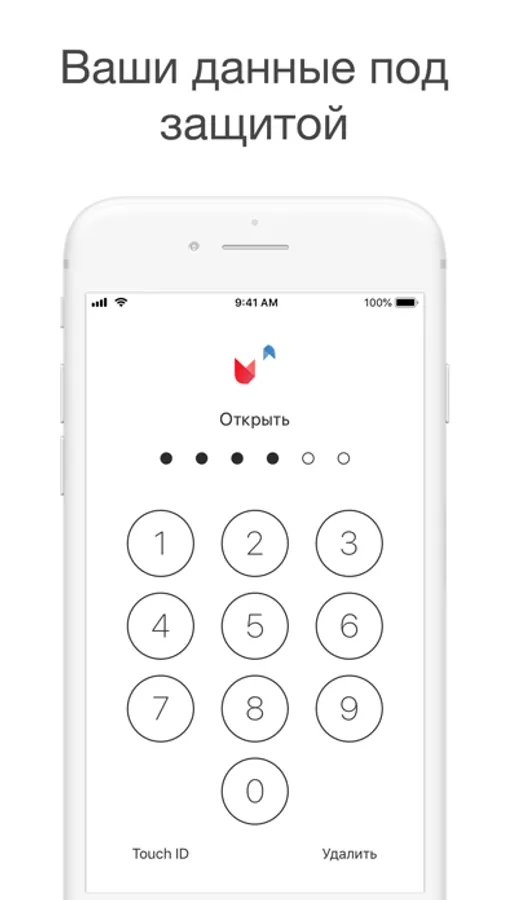 ∙ app access protection with pin code or Touch ID, all data removed after seven failed attempts