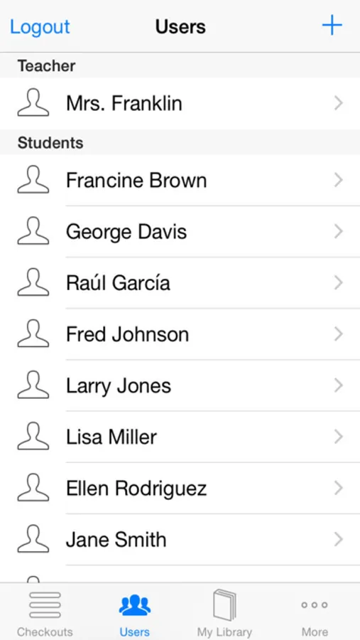 Classroom Checkout is designed to be installed on a shared iOS device, with each student and the teacher using a numeric login code to access the app.