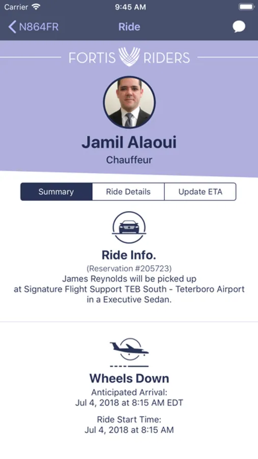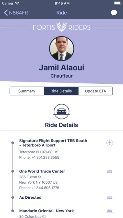 - Receive a real-time update when a chauffeur is confirmed on location at an FBO or handler