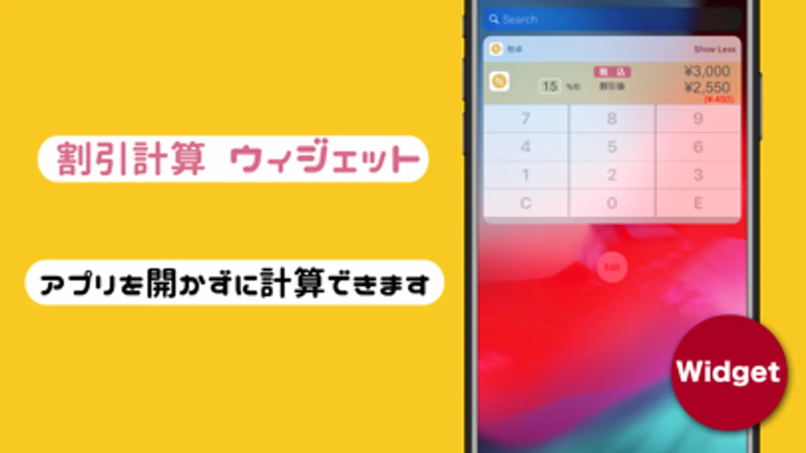 「ウィジェット」に対応!アプリを起動せずに素早く割引計算ができます。