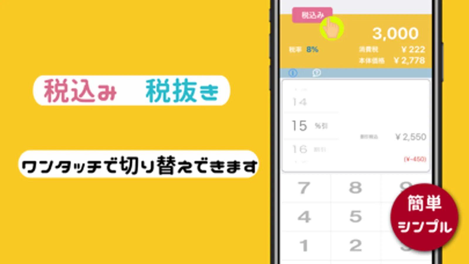 「20%OFF」「3割引き」…割引計算が苦手な方は税卓におまかせ!