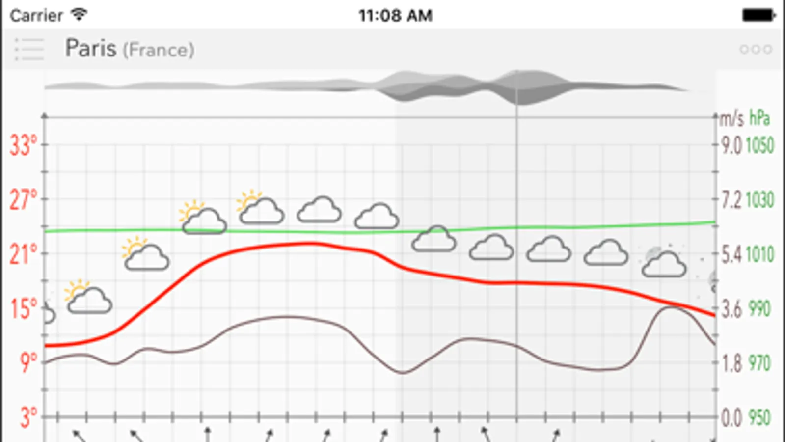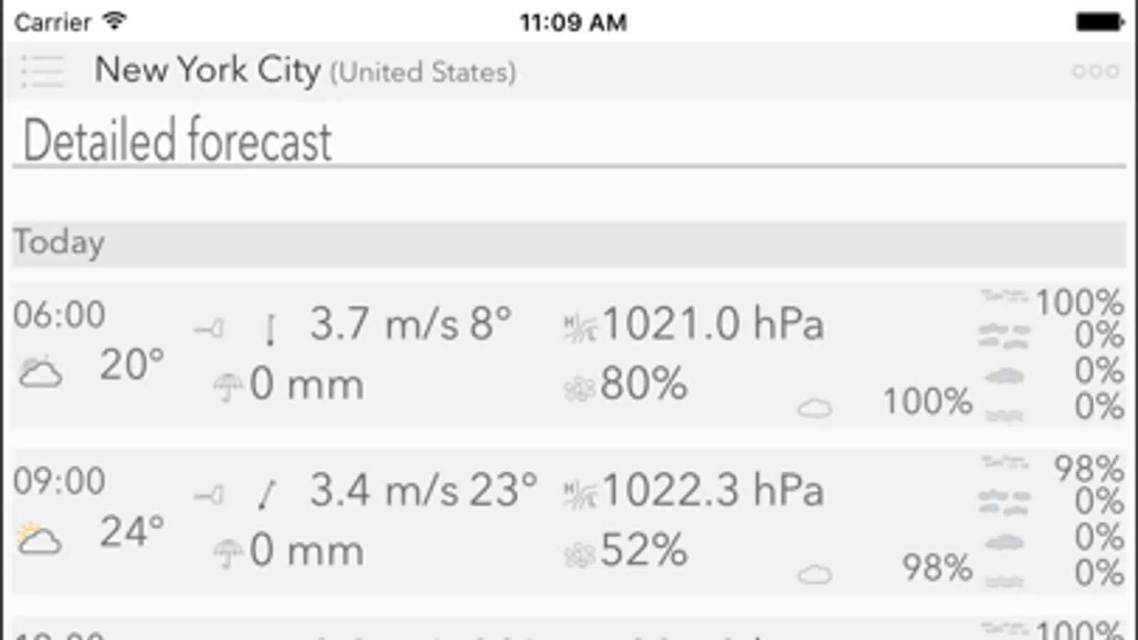 - Meteogram view (swipe to see more)