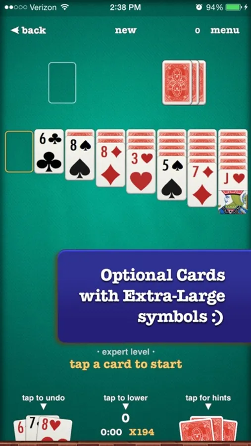 With this solitaire card game you also get all the nice features you would expect from a first class card game, such as: