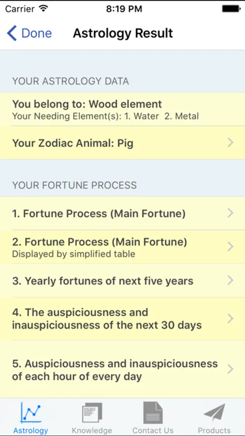 1.The Eight Words Destiny Chart and Fortune Process Chart hide the universal codes for the ups and downs, gains and losses as well as honors and disgraces of all stages of your life. The "Chinese Magic Eight Words Numerology" is just to interpret and calculate these universal codes for you and make you know how to advance and retreat in each stage of your life to remain invincible.