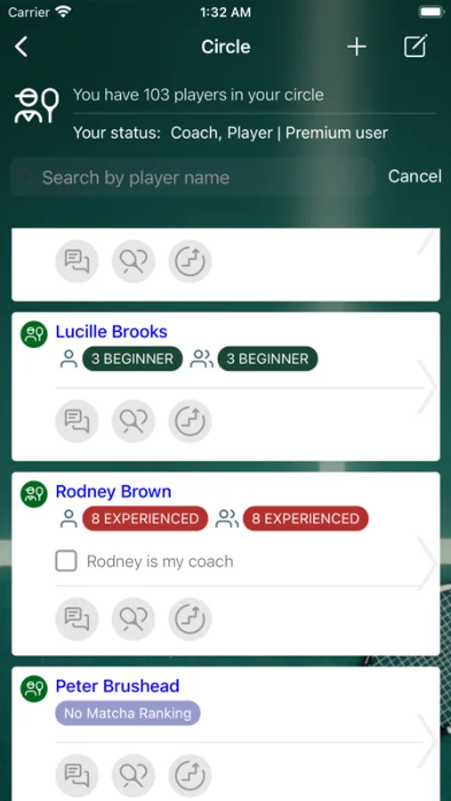 - Coaches: Communicate with your students and see their matches once they add you to their circle