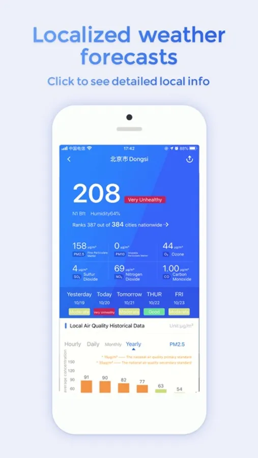 Warnings for heavy smog alerts in China to help users keep an eye on when stretches of heavy smog might hit