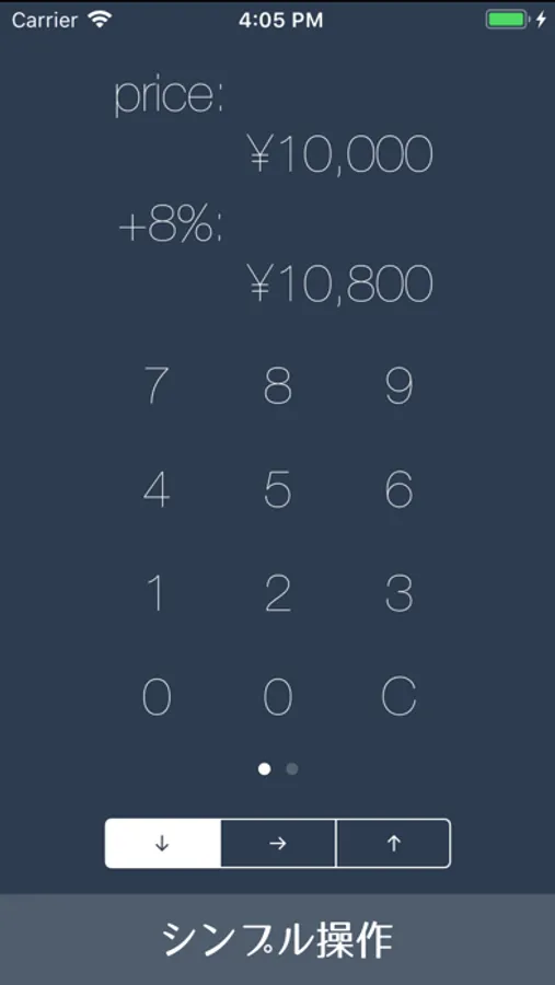 少数点以下の端数処理を「切り捨て・四捨五入・切り上げ」の中から選べるようになりました。画面下部の矢印ボタンにより切り替えることができます。「矢印下」が切り捨て、「矢印右」が四捨五入、「矢印上」が切り上げを表します。