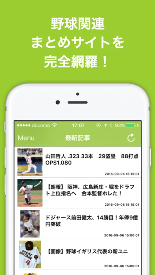 1タップの超簡単操作で最新の野球ニュースがサクサク閲覧可能!