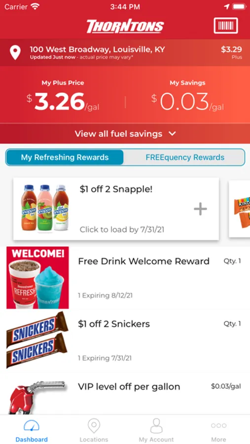 Thorntons all new app was created to save you time when you’re on-the-go! Simply register to be a Thorntons Refreshing Rewards member and start earning great offers with every swipe. At Thorntons, every visit is a big deal, and the more you visit, the more you’re rewarded.