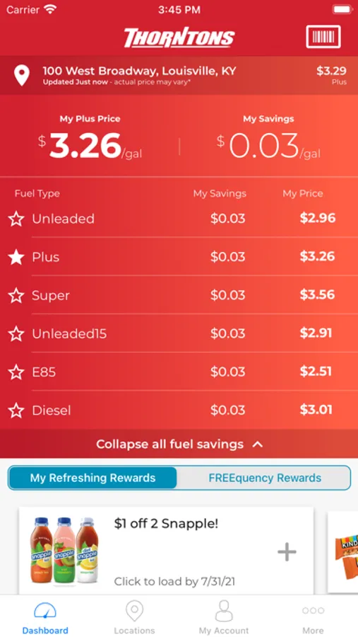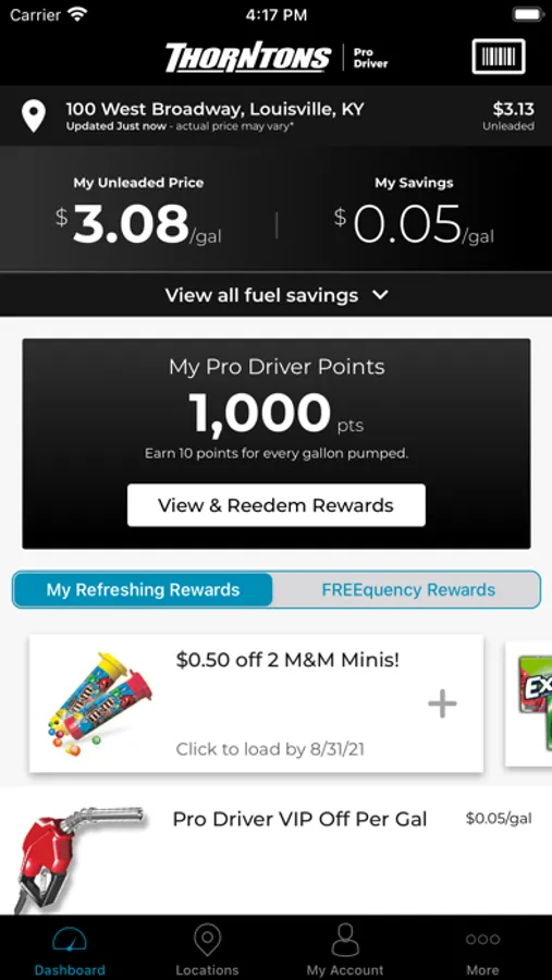 The all-new Thorntons app is here! Stay up-to-date on the lowest gas prices near you and easily keep track of your Refreshing Rewards and Professional Driver rewards.