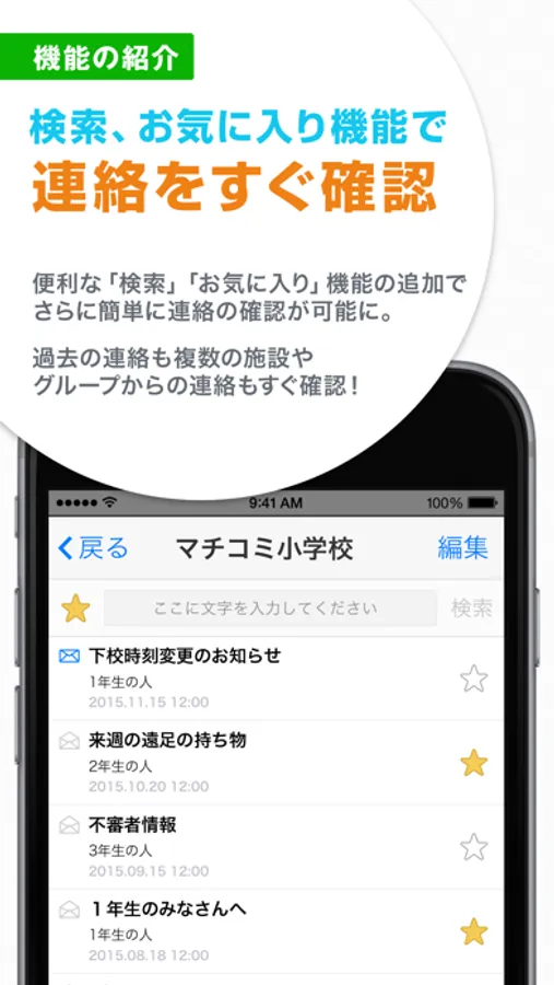 お気に入り登録や検索機能をご利用いただくと、過去の連絡を絞り込み、すぐに連絡を見つけることができます。