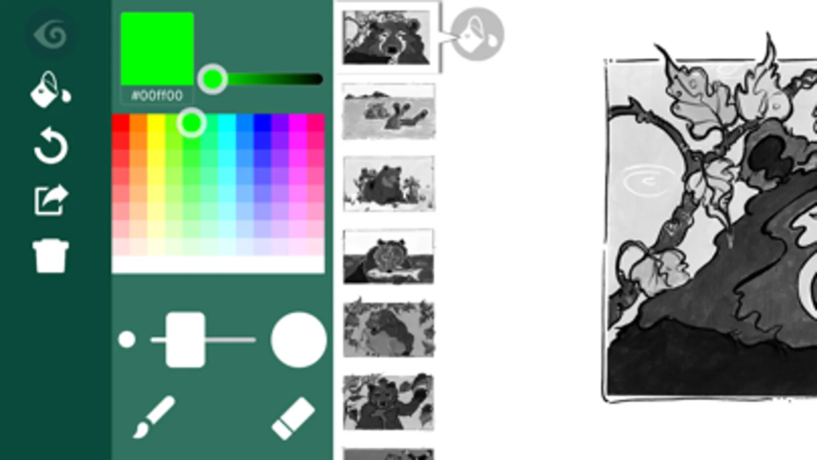 • Use the Color Palette to paint each page and save to customize your book even more,