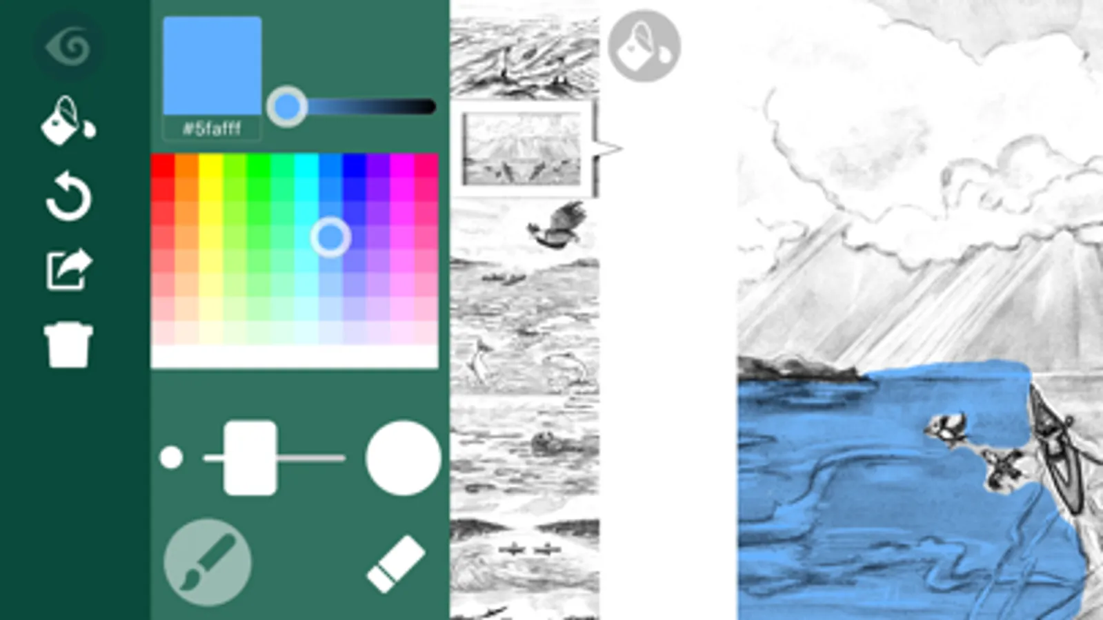 • Use the Color Palette to paint each page and save to customize your book even more,