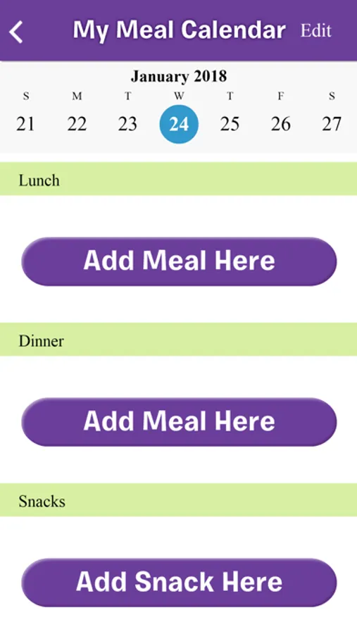 * Plan and log your food by adding meals and snacks to your meal calendar