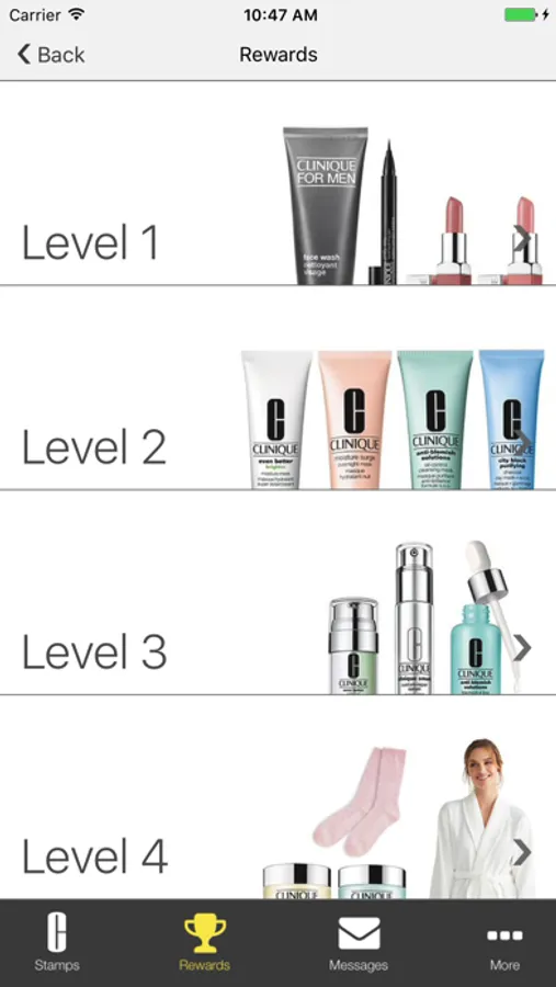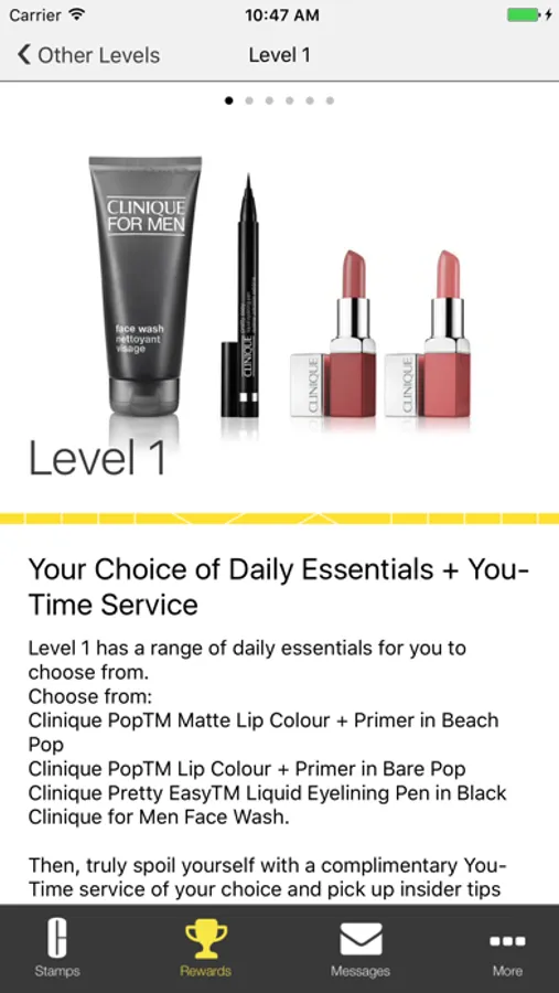 Clinique by invitation is a virtual stamp card where you earn stamps when you purchase Clinique, exclusive to Selfridges. As you accumulate stamps, you will be eligible for 4 levels of rewards. Show your App at Clinique at Selfridges to receive a virtual stamp for your purchase. UK only. T&Cs apply, see www.Clinique.co.uk/Selfridges