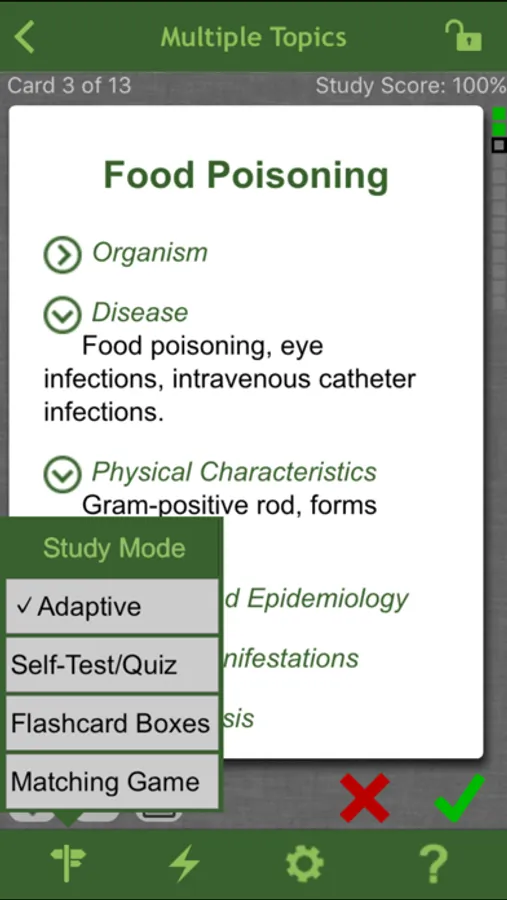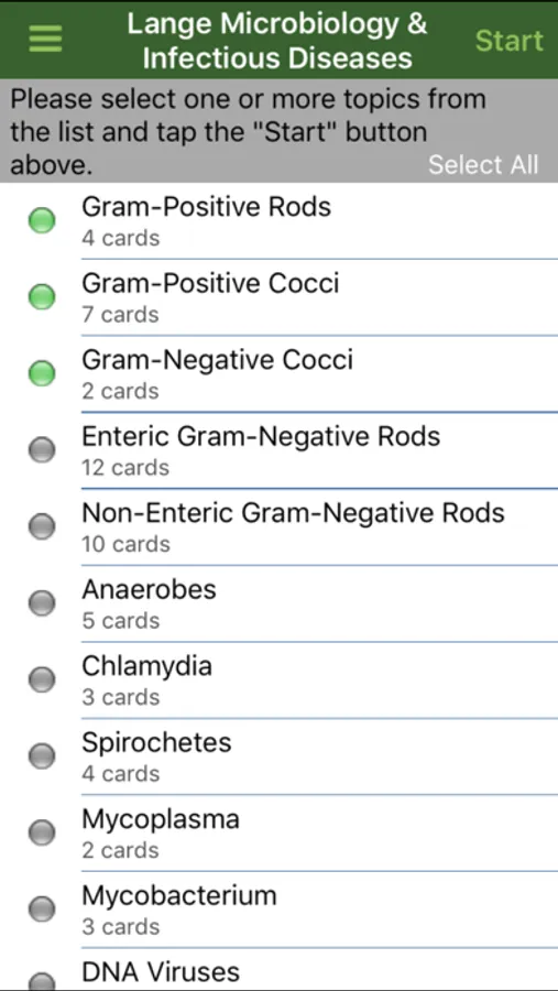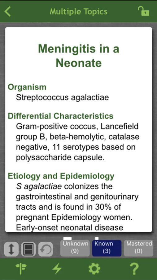 Organized into 25 major topics, this app provides a rigorous review of key concepts in medical microbiology. Taking a comprehensive approach, the cards cover the basic and clinical aspects of bacteriology, virology, mycology, parasitology, and infectious diseases. Within each category there is a selection of clinical vignettes requiring the application of textbook knowledge to real-life scenarios. Each vignette features a mini-case study of the disease and the flip side presents the etiology and epidemiology, pathogenesis, clinical manifestations, laboratory diagnosis, and treatment and prevention of the disorder.