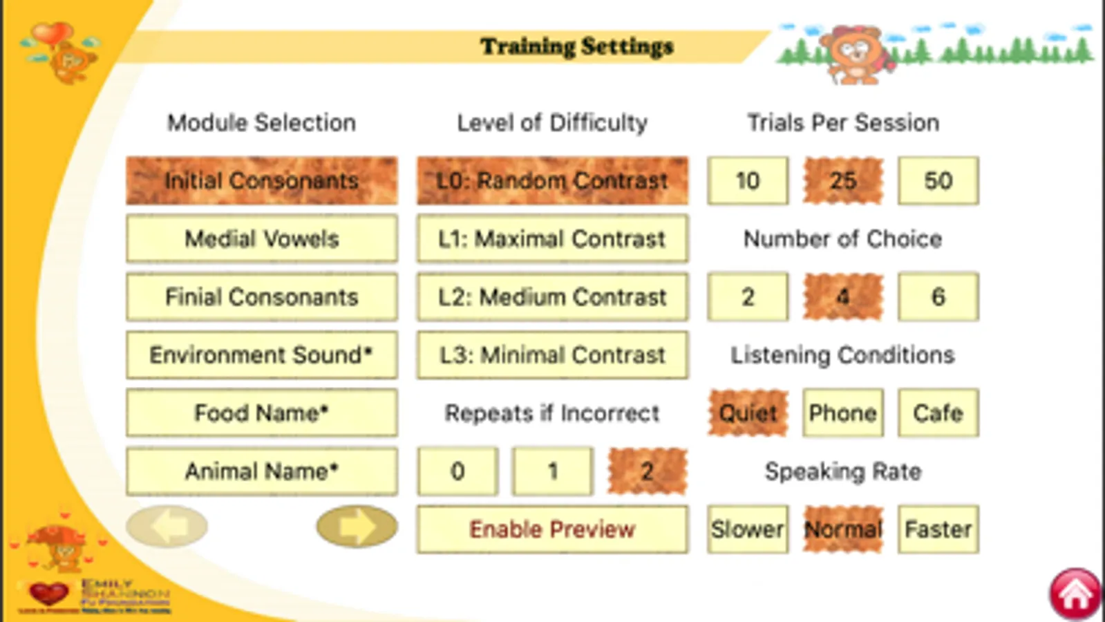 Welcome to i-Angel Sound, an interactive auditory training program that lets you take control of your listening rehabilitation independently at home. You gain practice in discriminating and identifying sounds and speech components through a series of self-paced modules that cover different aspects of the listening process. The level of difficulty can be adjusted to match your developing listening skills. The program provides audio-visual feedback. Focused on practice and improvement of your listening skills, i-Angel Sound compliments your clinic rehabilitation program. The i-Angel Sound is developed by Inconvenient Solutions, the mobile division of TigerSpeech Technology Inc. and Emily Fu Foundation, which is devoted to develop innovative speech software for hearing impaired and children to facilitate the learning of sounds. The program contains a few thousands sounds from several categories, including environmental sounds, the name of common foods, the name of familiar animals, and monosyllabic words. The phonetic contrast training protocols used in the monosyllabic word training reinforce the brain's ability to distinguish between phonemes which are the building blocks of language. The program is suitable for anyone who want to improve the sound perception or simply to enjoy listening to all kinds of sounds, including environmental sounds and music.