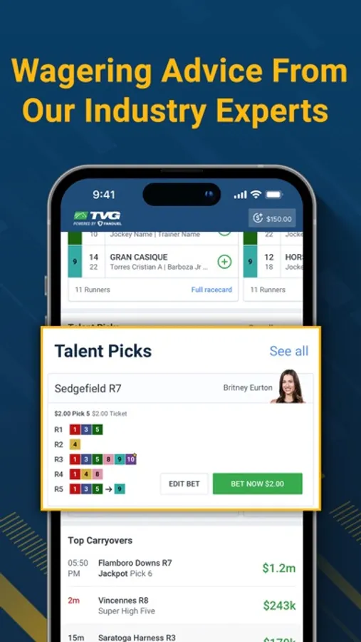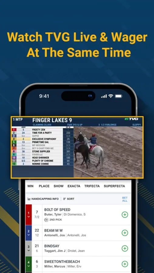 From the #1 Horse Racing Network comes America’s very first legal horse racing betting app. Bet effortlessly on Horse Races at over 300 tracks around the globe - gain exclusive insider access to TVG handicapping info – watch races broadcasted in stunning HD live from the track – and most importantly, PLAY TO WIN!