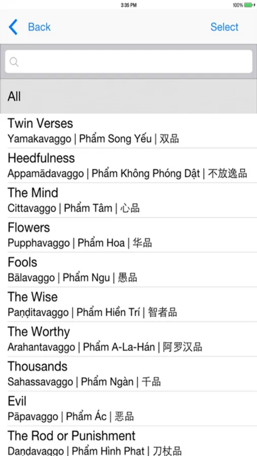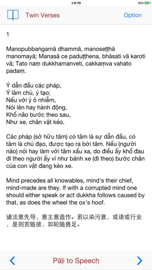 iDhammapada is a free iOS application which use to read Dhammapada. You can view 423 "Dhamma sentence" by four languages such as Pali, English, Chinese and Vietnamese with Pali text to speech.