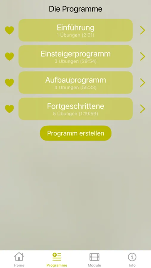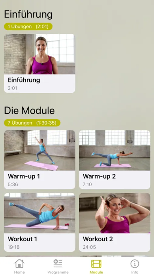 Alle Module (Workouts plus zwei Warm-ups & Cool-downs) lassen sich einzeln anwählen und individuell kombinieren. Mit wenigen Klicks lässt sich das Training so kinderleicht personalisieren.
