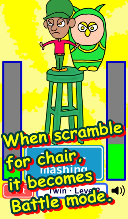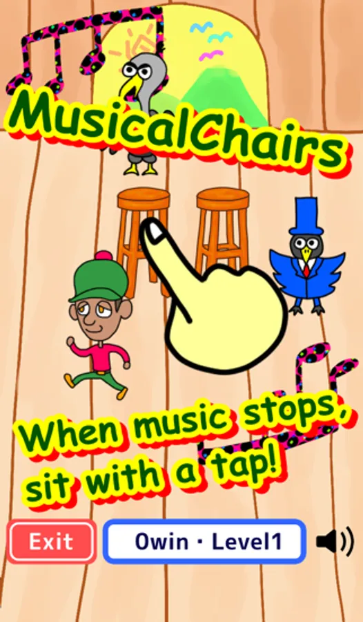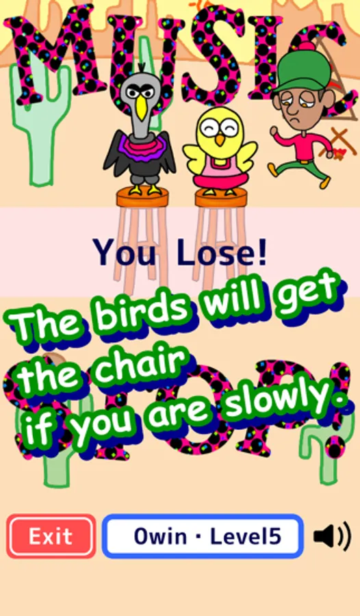 Musical chairs is referred to as "bird and chair" in the pun in Japanese.