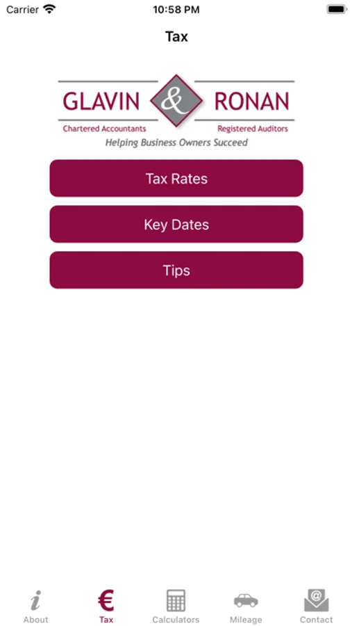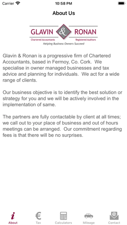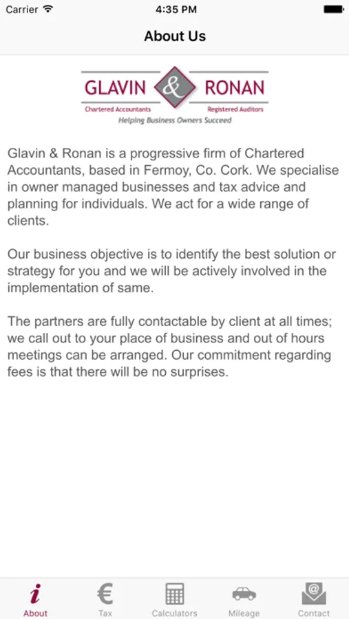 This app is brought to you and your business compliments of Glavin & Ronan, Chartered Accountants and Registered Auditors based in Fermoy, County Cork, Ireland.