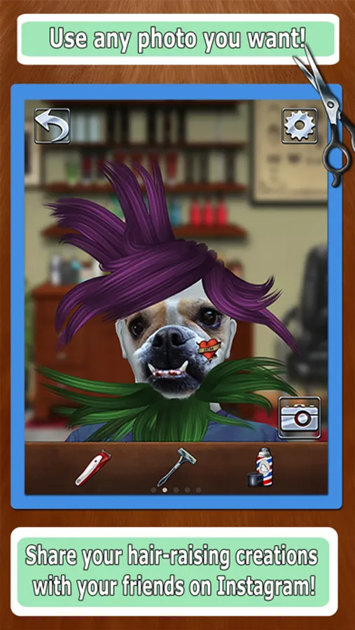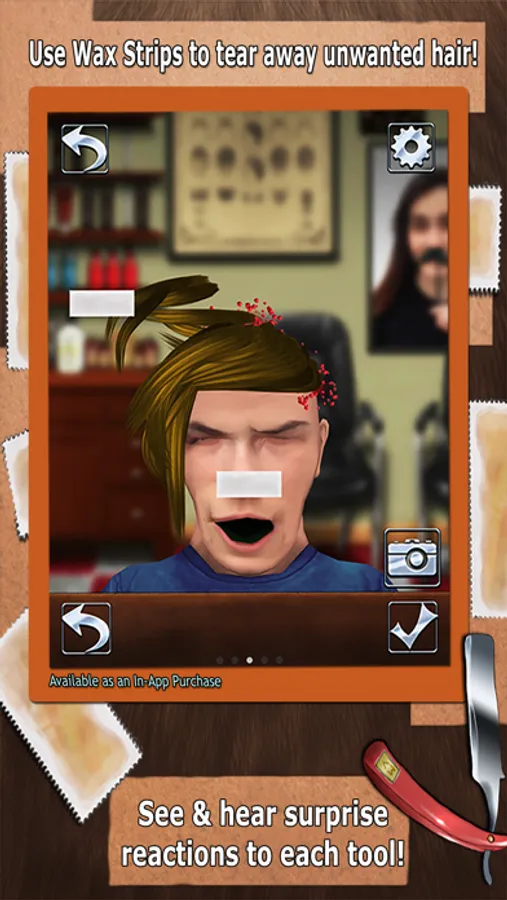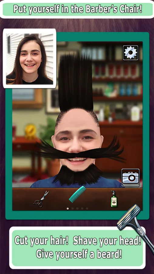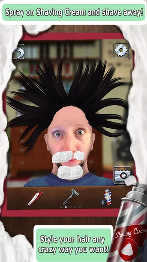 Pick from a fun assortment of shaving, cutting and hair styling tools to play with. Give yourself that dream haircut! Grow a curly mustache! Cleanly shave your head and face! Style your hair any way you want with the swipe of a finger!