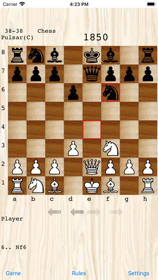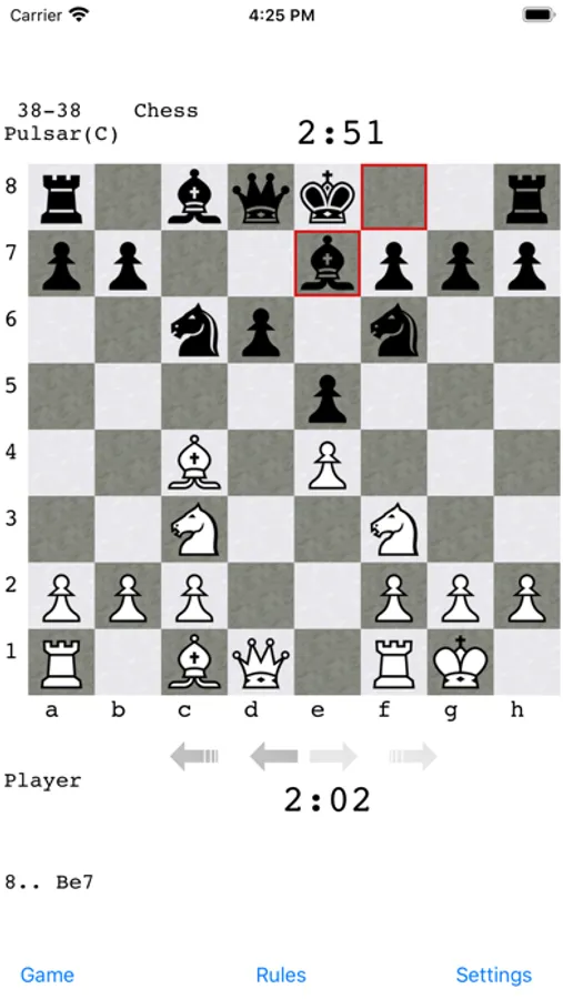 The game button - configure game menu item, lets the user control the variant and difficulty. It defaults to Chess at Easy(lowest level) but remembers the current settings when the App restarts. There are choices of pieces and board color schemes. The Pulsar program was originally developed by me for computers starting in 1998 and came to mobile for the first time in 2014.