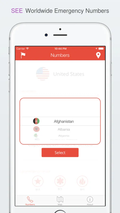 Dial local emergency police, fire, and ambulance phone numbers anywhere in the world with a single touch.