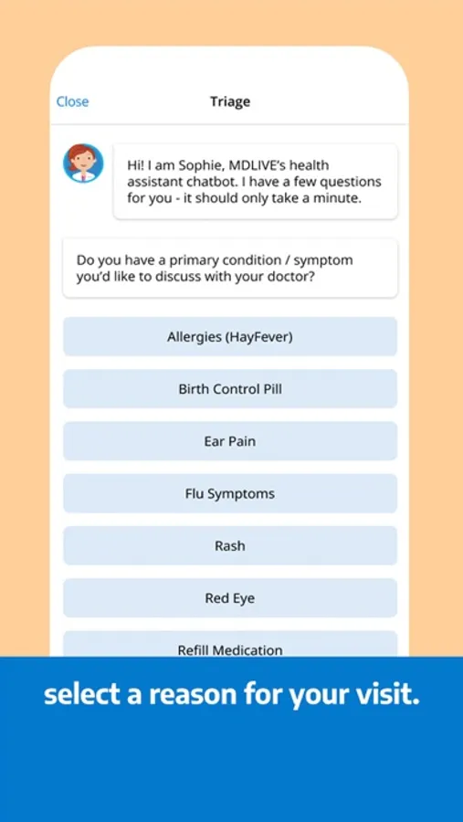 MDLIVE may not be available in certain states and is subject to state regulations. MDLIVE does not replace the primary care physician, is not an insurance product, and may not be able to substitute for traditional in-person care in every case or for every condition.