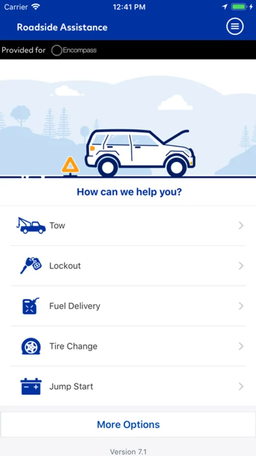 The Encompass Roadside Assistance app has been carefully designed to make requesting assistance faster, more accurate, and convenient.