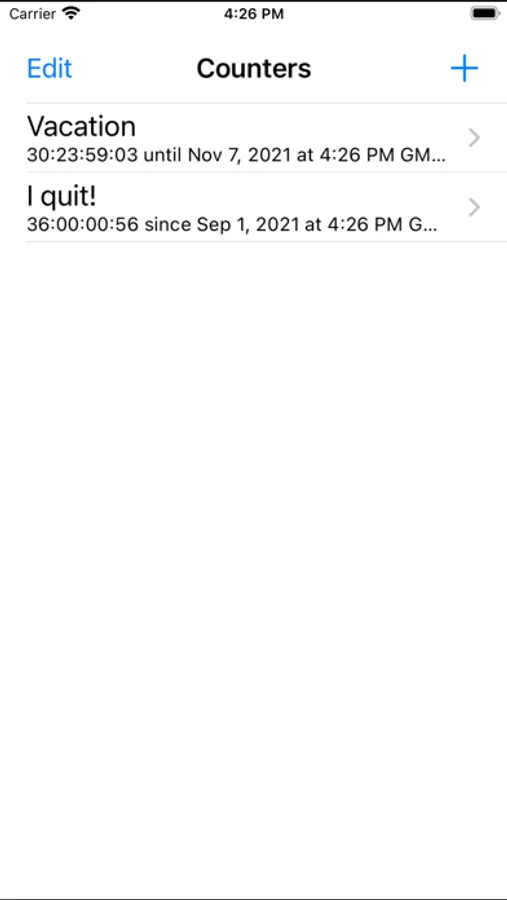 Everybody takes time for granted at some point. It’s easy to lose track of the days as they tick by. Viscount helps you keep time in perspective by showing you a running count of the elapsed days for all your important dates.