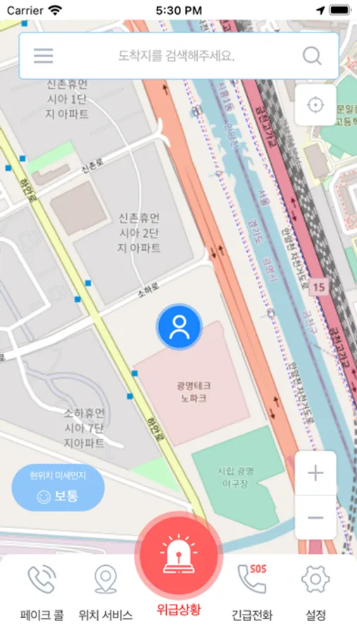 ※ 본 서비스는 지역 특성에 따라(건물 실내, 지하, 높은 건물 주변 등) 스마트 폰 GPS 수신이 원활하지 않아 사용자의 위치정보가 표시되지 않거나 정확도에 차이가 발생할 수 있습니다.