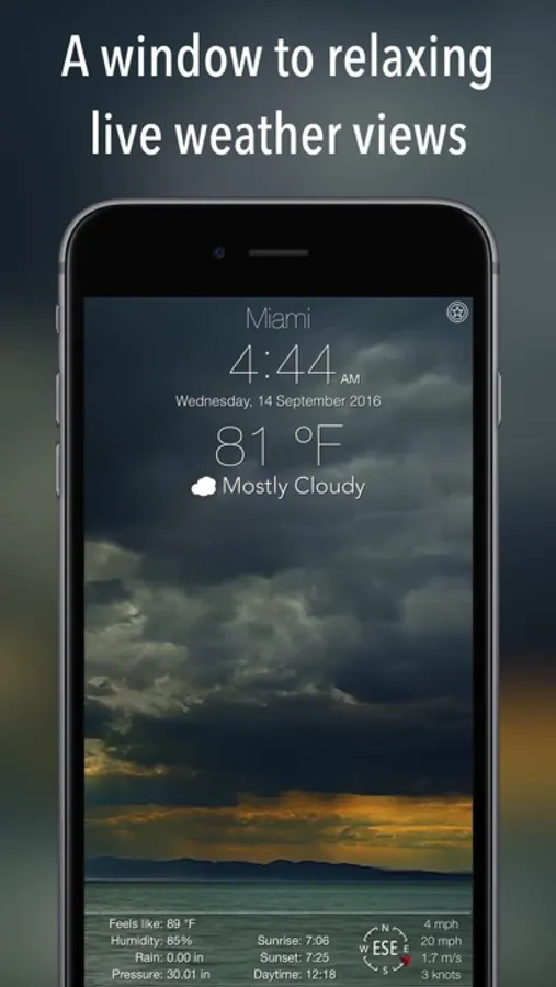 Choose from a variety of HD animations to match the weather conditions in your area, your mood or show random scenes. Beautiful ocean views, calming rain scenes, fog fly-bys, magical thunderclouds and many others bring the weather to life to your screen.