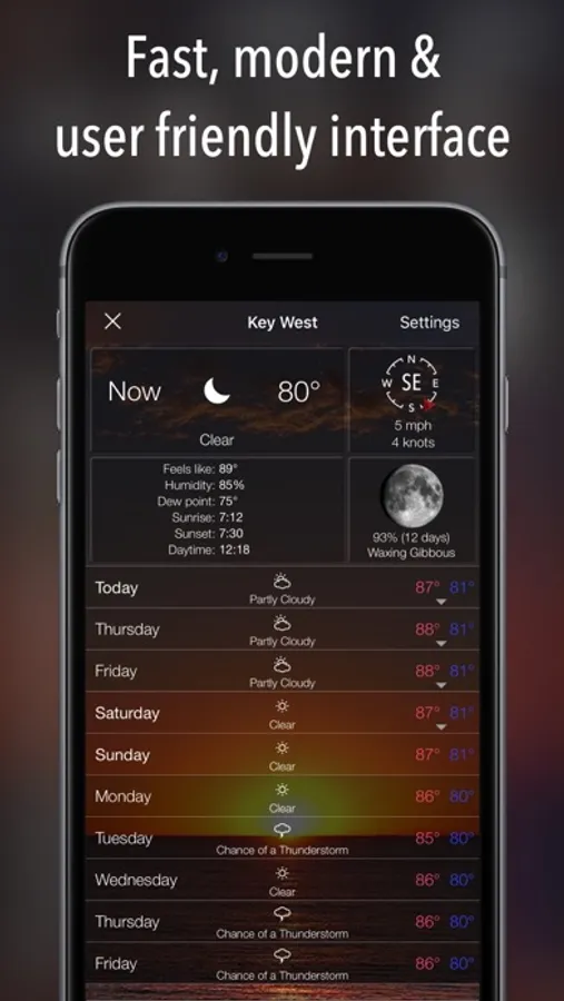 Always stay a step ahead of the weather with the 10 Day Weather app. Plan ahead for the following weekend, that party, sports competition, outing etc.