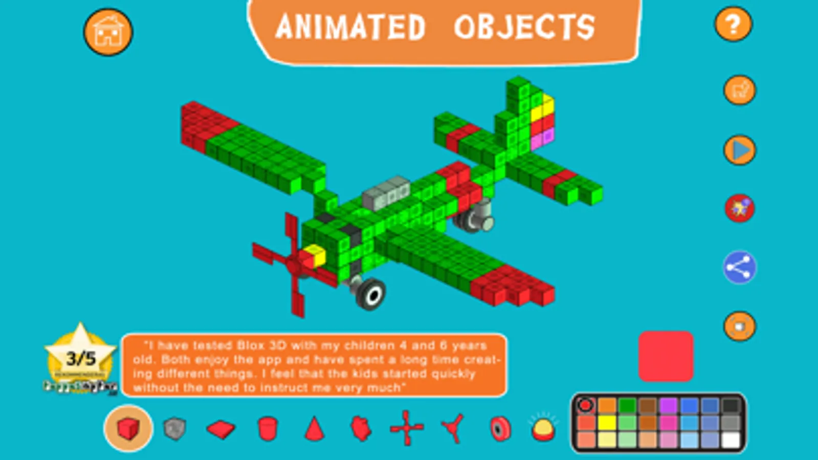 “...Super nice 3d building blocks app. simple to use allows creativity to flow in our little builders...” Michel,apps4kids.net
