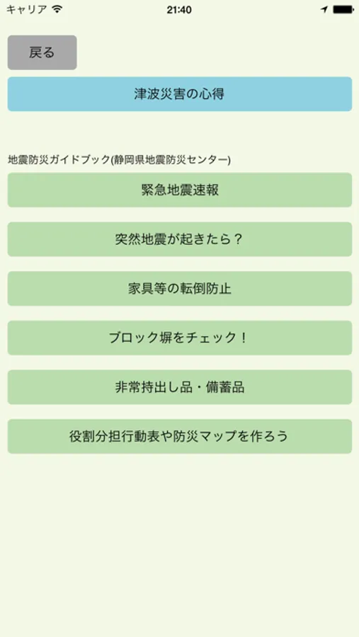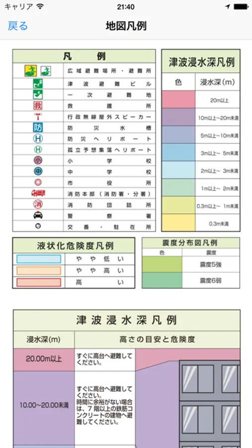 インターネット通信環境がない状態でも、津波ハザードマップを参照でき、GPSを利用して最寄りの避難所や避難場所などを確認することができます。
