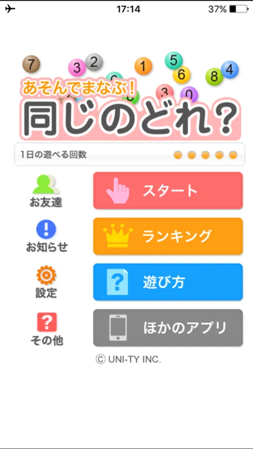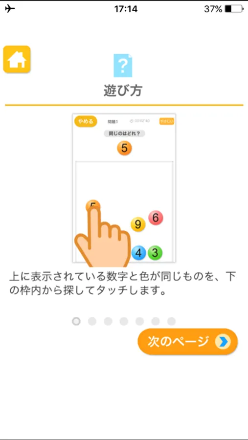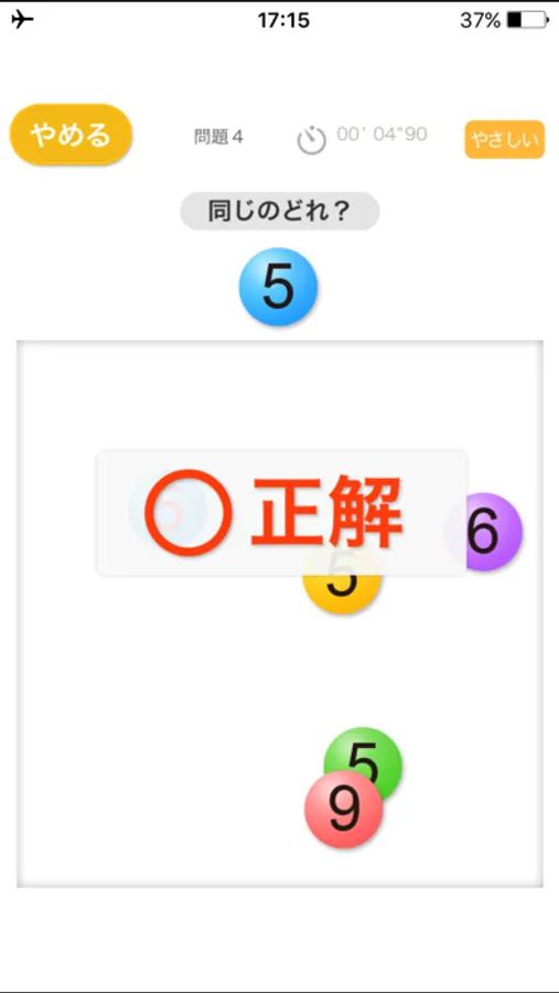 問題の数字と色が同じものをタッチして当てるアプリです。