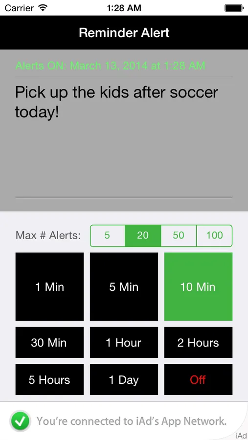 With Reminder Alert you will never forget to make that important phone call, or pick up those items, or watch that sports game.
