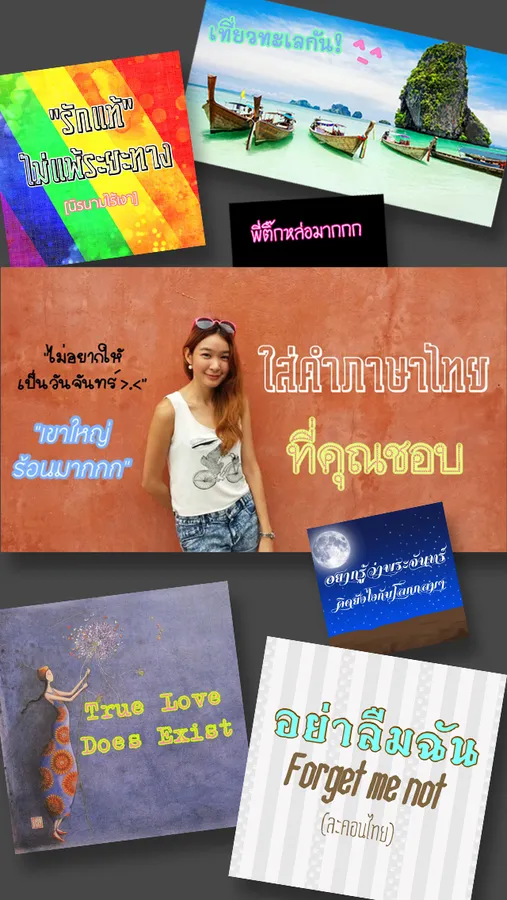 "ใส่คำ" เป็นโปรแกรมสำหรับใส่คำพูดลงไปในรูปภาพ ด้วยตัวอักษรสวยๆ ที่ออกแบบมาเพื่อภาษาไทยโดยเฉพาะ จำนวนมากกว่า 100 แบบ จากศิลปินคนไทย ที่ผมคัดสรรมาอย่างดี