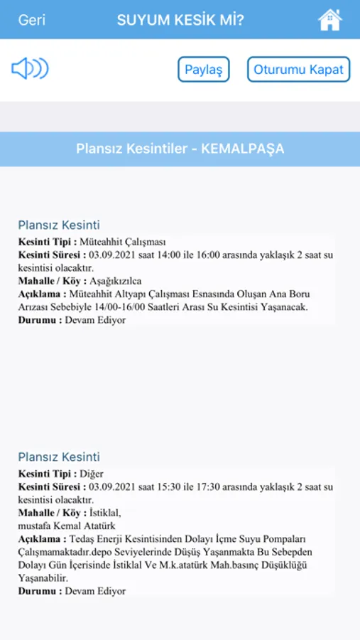 Planlı Su Kesintileri ve Arıza Kaynaklı Su Kesintileri bilgilerine erişebilirsiniz.