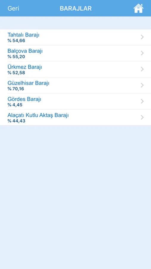Barajların doluluk oranı, su yüksekliği, hacmi vb. bilgilere ulaşabilirsiniz.