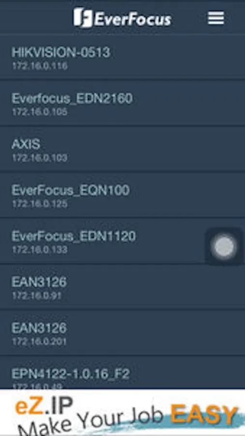 The “EF Sidekick” application, which works with EverFocus’ IP Sidekick, is designed to eliminate all the troubles you may go through when installing IP cameras.
