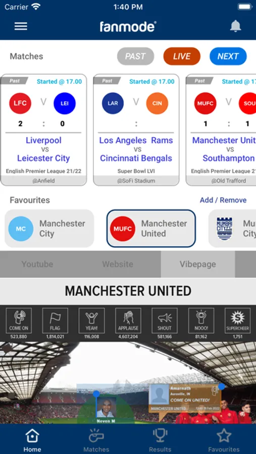 Fanmode is a conversation between the fans and the live game, and Vibecast is your voice. Clap, cheer, wave your flag - It lets you broadcast your support for your team to the entire world, via your smartphone or internet-enabled device. Check out the action on the Vibeboards at www.fanmode.com