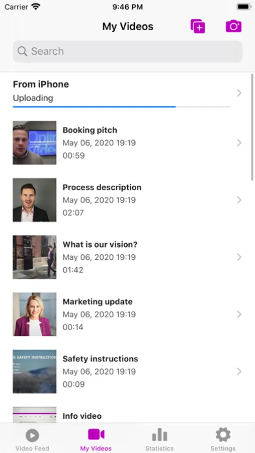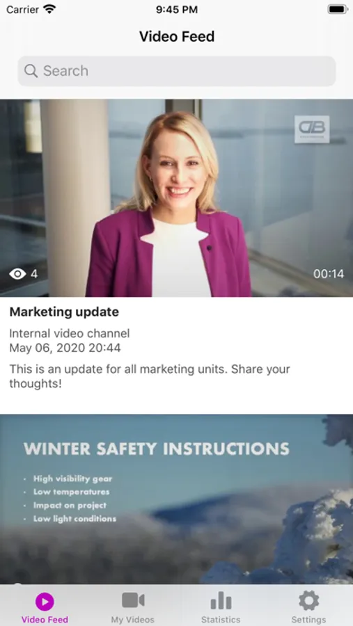 Follow your favourite video channel – such as your team or company videos. Get a notification every time new content is available. Collaborate with colleagues by liking and commenting on videos. Experience enterprise videos anywhere and anytime.